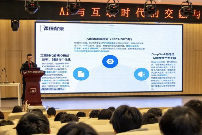3月21日晚18点,伟德国际周磊老师以“AI 与互联时代的交融与应用”为题开展第一次课程。周老师深入剖析了 DeepSeek 与主流工具的组合应用技巧。现场,他凭借丰富案例与实操演示,为大家揭示了如何借助这些工具提升多场景智能化效率。在互联时代,AI 不再是孤立的技术,而是与各类工具深度融合,重塑生产生活方式。学员们在互动环节踊跃提问,探讨 AI 在不同行业的落地应用,思维的火花激烈碰撞。