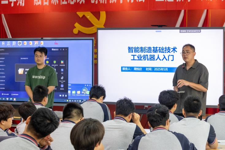 2025年5月15日上午10点40分,我院周悦欣老师受邀前往宁波行知中等职业学校,为高一年级学生带来了一场题为“智能制造基础技术-工业机器人入门”的专题讲座。本次讲座旨在激发学生对智能制造领域的兴趣,帮助他们了解工业机器人技术的基本原理及其在现代工业中的广泛应用,同时也为他们未来的职业规划提供指导。