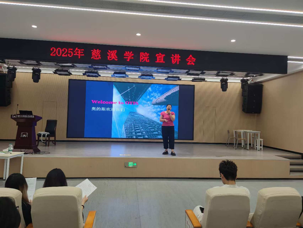 2025年5月21日下午,全球知名电梯企业宁波奥的斯集团走进我校伟德国际,举办专场校园招聘宣讲会,吸引了众多学生参与。宣讲会上,集团人力资源部刘经理详细介绍了企业发展历程、技术优势及安全、诚信、创新的核心价值观,并围绕薪资福利、职业晋升通道等学生关切问题进行解读,展现了企业完善的培养体系和广阔发展前景。