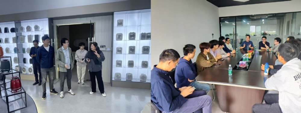 10 月 23 日下午,专业教师胡寅、王柏华和朱德彪继续走访慈溪市富运电器有限公司,与公司副总经理、技术总监、人事主管及11 名实习学生(自动化 2322 班 9 人、机器人专业 2 人)共同座谈。学生们在过去几个月中参与了多岗位轮岗实习,全面了解了企业运作流程。企业方对学生表现给予高度评价,学生也普遍认为轮岗实践拓宽了视野,增强了综合能力。