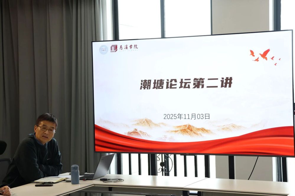 2025 年 11 月 3 日,伟德国际VICTOR1946第二期 “人才之家・潮塘论坛”在综合楼开讲,论坛以“二级学院行政工作的基本理念和方法”为主题,党总支书记沈弥雷结合自身管理学研究与实践经验主讲,学院领导班子成员及全体行政人员参会。